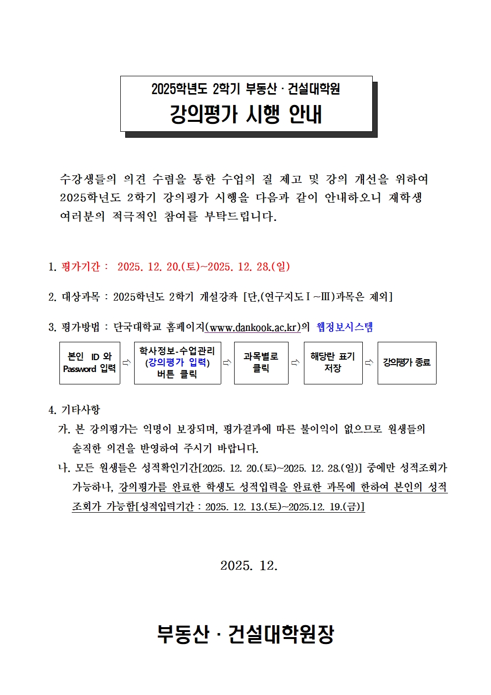 | 2025학년도 2학기 강의평가 시행 안내 | |