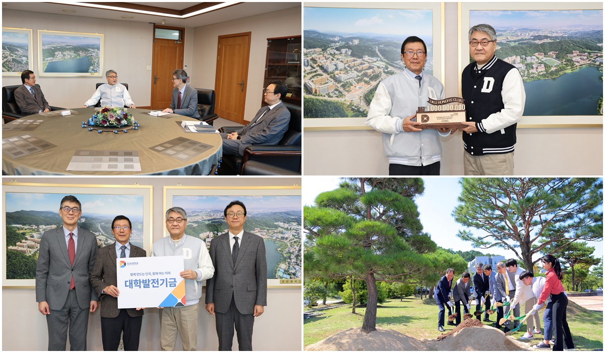 ​ 12월 30일, 죽전캠퍼스 접견실에서 신석주 동문(화학공학과 75학번, (주)거보산업 대표)이 '신&박 장학금' 총 3억 원을 약정하고, 첫 기탁금으로 5천만 원을 전달했다. (누적 발전기금 : 11억 4,700만 원) '신&박 장학금'은 2019년 별세한 신석주 동문의 부친과 모친의 성(姓)을 함께 따 명명한 장학기금으로, 부모님에 대한 감사와 존경의 마음을 후배 교육으로 이어가겠다는 뜻을 담고 있다. 이날 행사에는 김재일 대외부총장, 신은종 대외협력처장이 함께 참석하였고, 안순철 총장은 "18년간 한결같이 모교와 후배를 위한 사랑을 실천해 주신 고귀한 뜻을 잘 새기겠다."며 감사의 인사를 전하였다. *지난 2019년, 우리 대학은 신석주 동문에게 감사한 마음을 담아 죽전캠퍼스 평화의 광장에 기념식수를 식재했다.