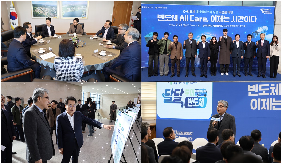 2월 27일, 죽전캠퍼스 글로컬산학협력관에서 경기도와 함께 개최한 "K-반도체 메가클러스터 상생 타운홀 미팅[반도체 All Care, 이제는 시간이다]" 행사에 참석하여 산·학·관 주요 인사들과 함께 용인 반도체클러스터 조성 방안 등에 대하여 논의하였다.
