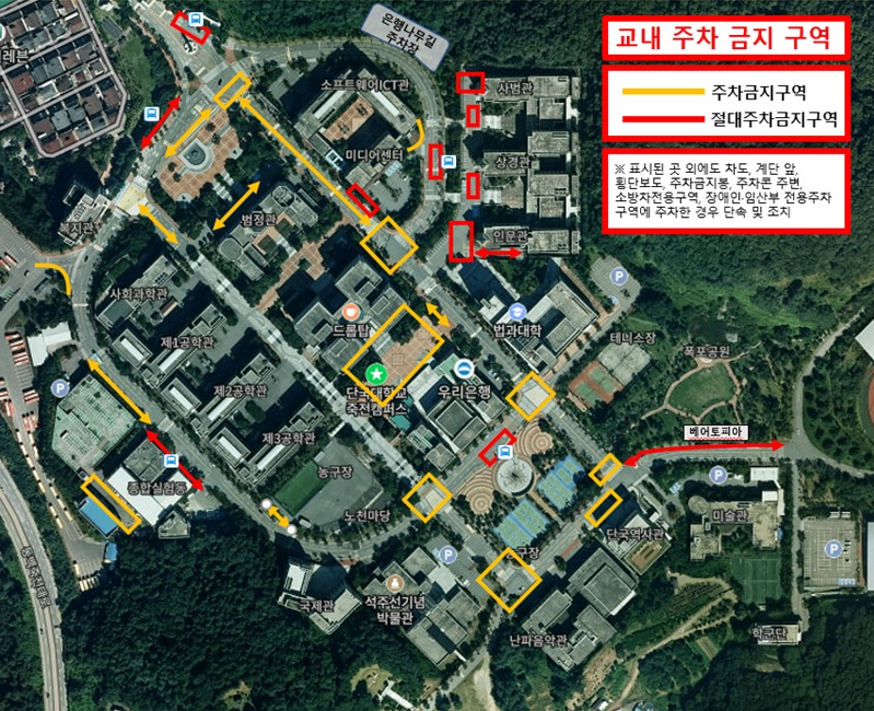단국대학교 교내 주차 질서 확립을 위하여 불법 주·정차 단속 시행을 아래와 같이 안내합니다.